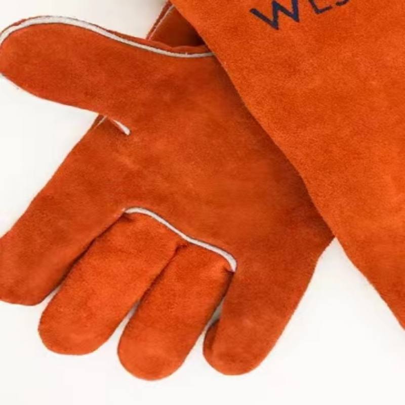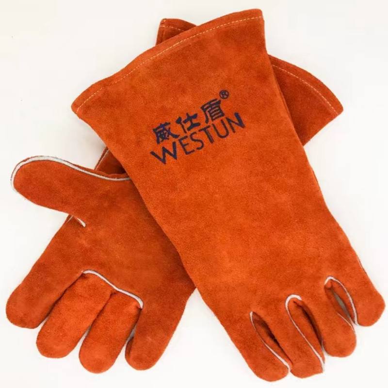 橙紅色牛二層皮電焊手套(長35CM)